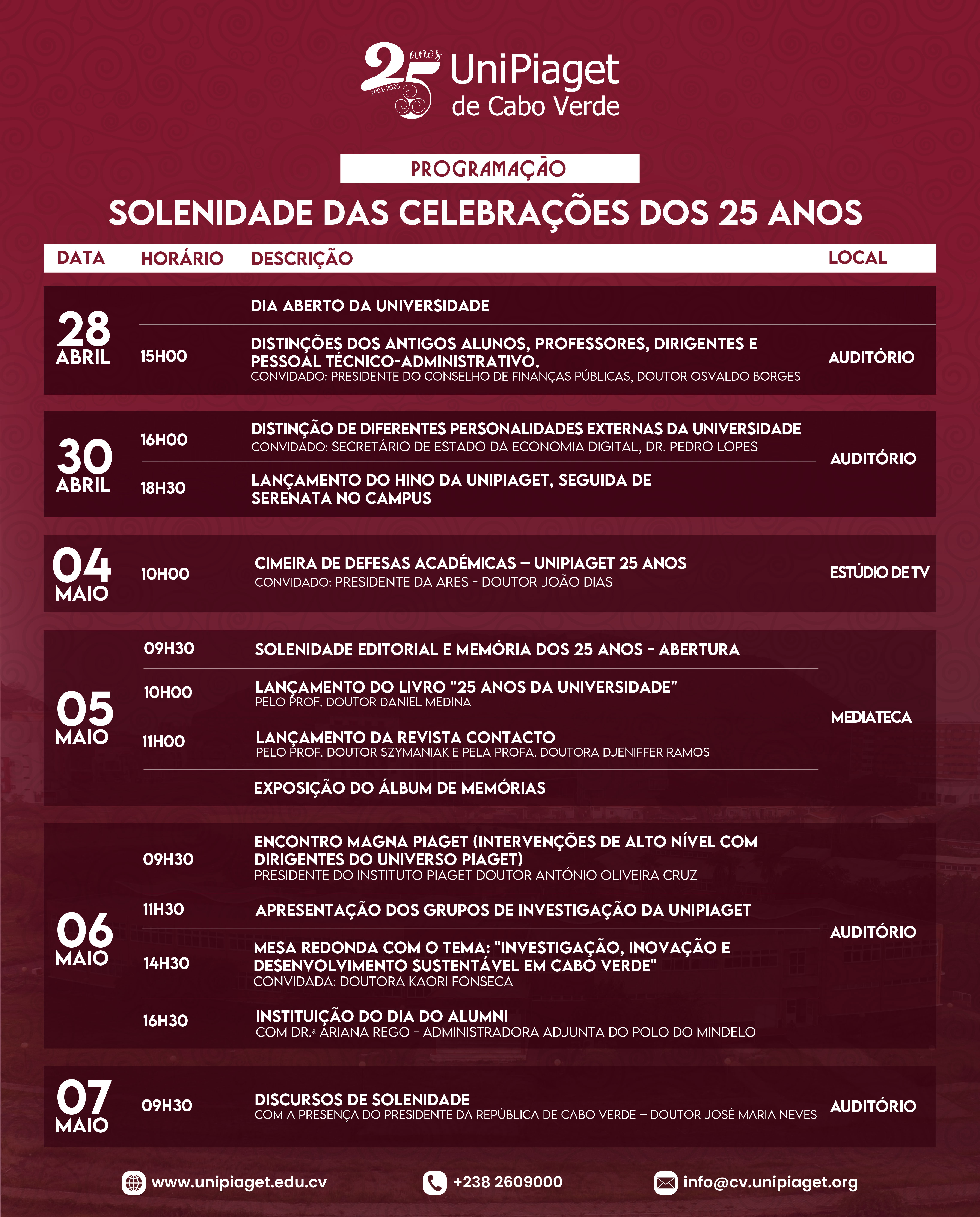A Universidade Jean Piaget de Cabo Verde (UniPiaget) realizou, no dia 10 de abril, às 14h30, no campus da Praia, o Festival de Cursos, uma iniciativa que reuniu estudantes do ensino secundário para um primeiro contacto com o ambiente universitário.
