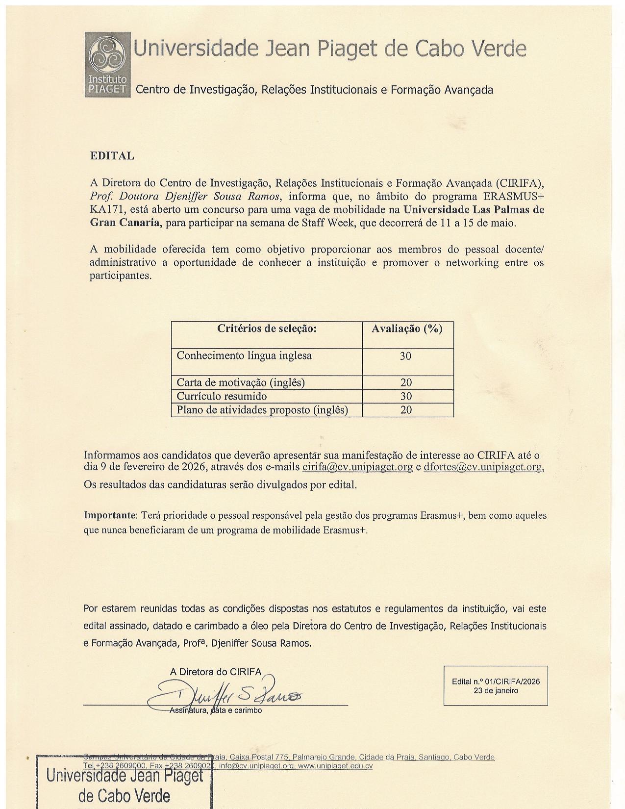 Applications until February 10, 2026cirifa@cv.unipiaget.org | dfortes@cv.unipiaget.org