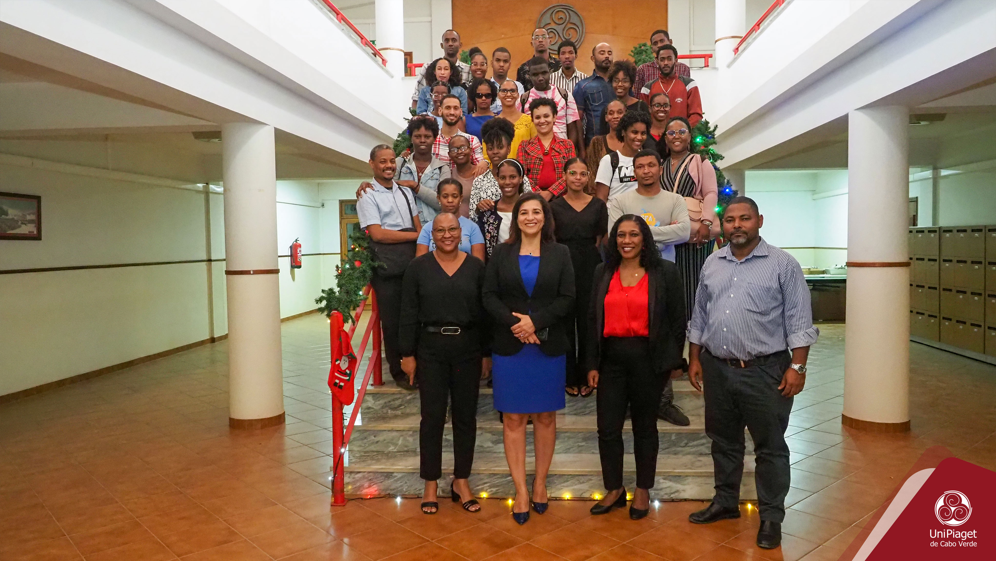 A Universidade Jean Piaget de Cabo Verde recebeu no dia 20 de dezembro, a Secretária de Estado da Inclusão Social, Drª Lídia Cristina de Melo, madrinha das turmas do 1º e 2º ano do curso de Ciências da Educação e Praxis Educativa para um convívio natalino com os alunos.