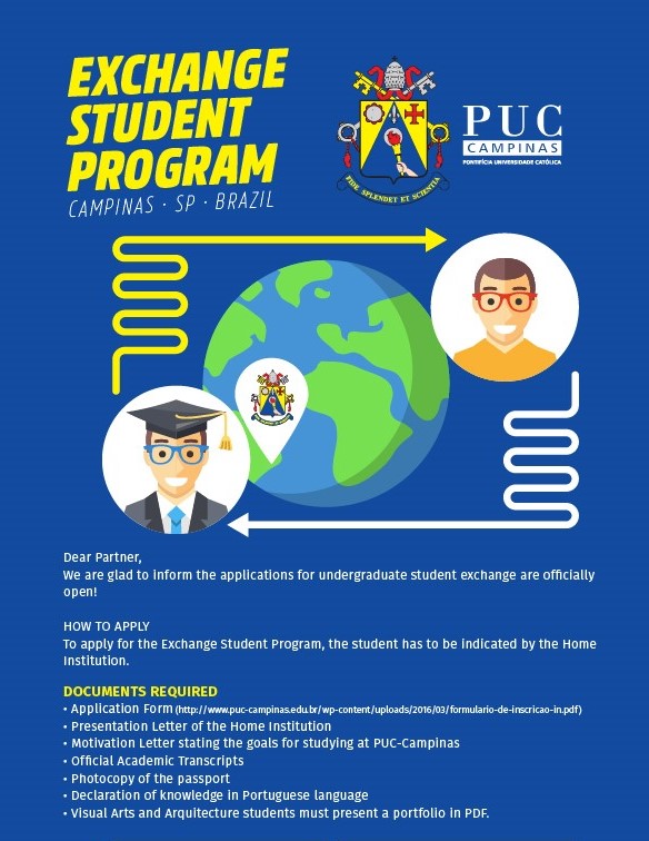 No âmbito do programa ERASMUS+, a Universidade Jean Piaget de Cabo Verde, anuncia que se encontra aberta as candidaturas para realizar, em regime online, o 2º semestre de 2022 (agosto - dezembro) na Pontifícia Universidade de Campinas - PUC Campinas.   Os estudantes interessados devem enviar um e-mail ao dre@puc-campinas.edu.br., até o dia 30 de abril, com os seguintes documentos: carta de apresentação da instituição, carta de aprese...