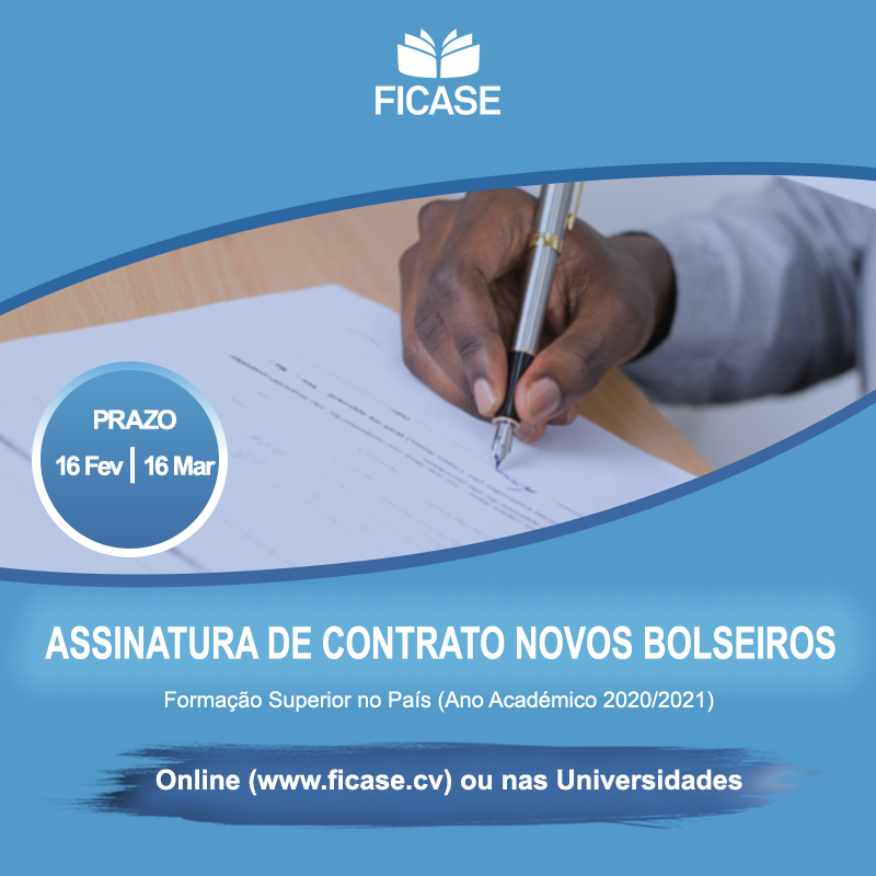 A Universidade Jean Piaget de Cabo Verde informa aos estudantes que foram beneficiados com a bolsa de estudos do governo de Cabo Verde, selecionados através do concurso Bolsas para Formação Superior no País - ano letivo 2020/21, que já podem proceder a assinatura do contrato com a FICASE