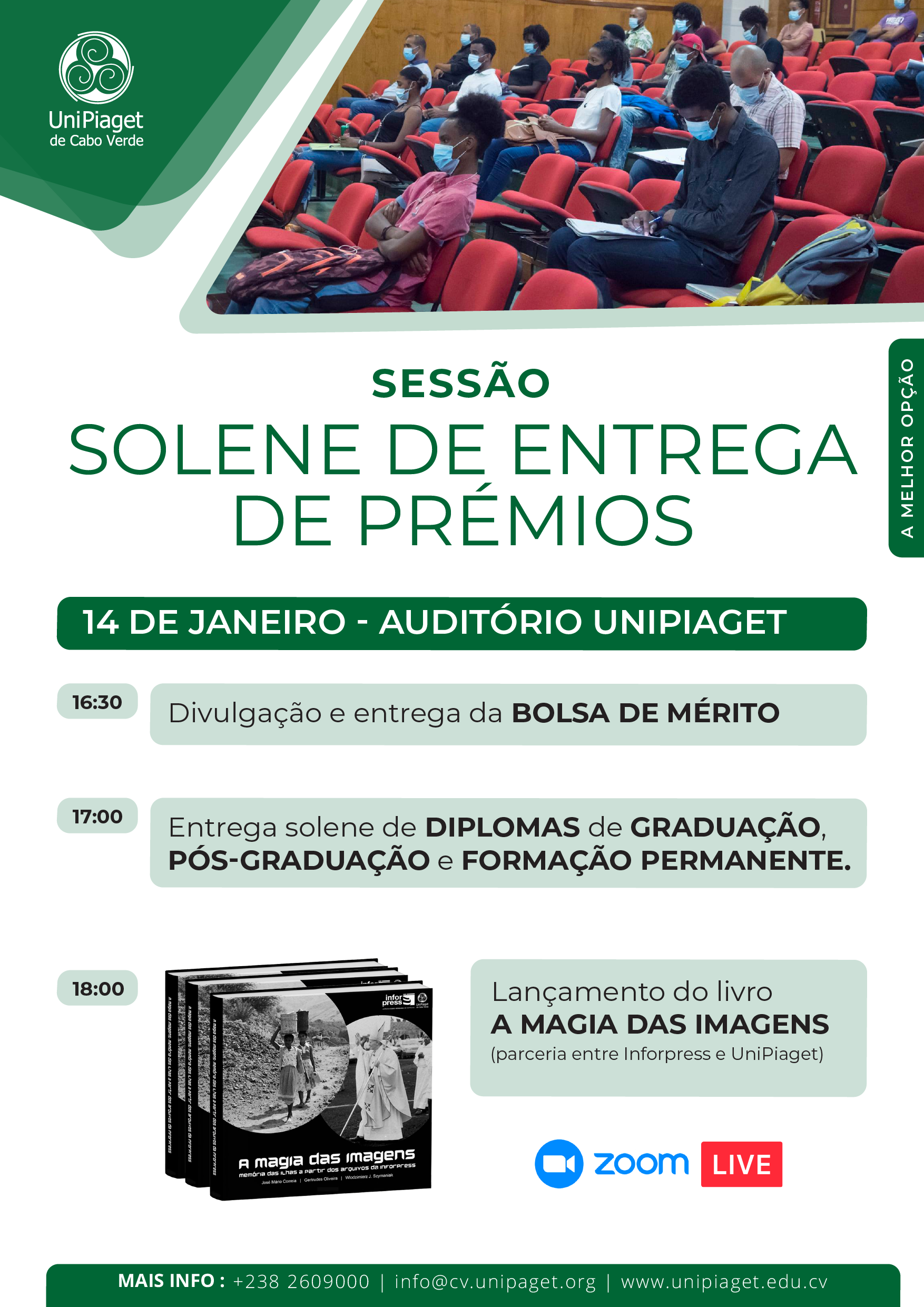 A Universidade Jean Piaget de Cabo Verde e a Agência Cabo-verdiana de Notícias – Inforpress apresentaram, ontem, 14 de janeiro, a obra intitulada “A Magia das Imagens – Memória das Ilhas”, no auditório Almeida Santos da universidade.